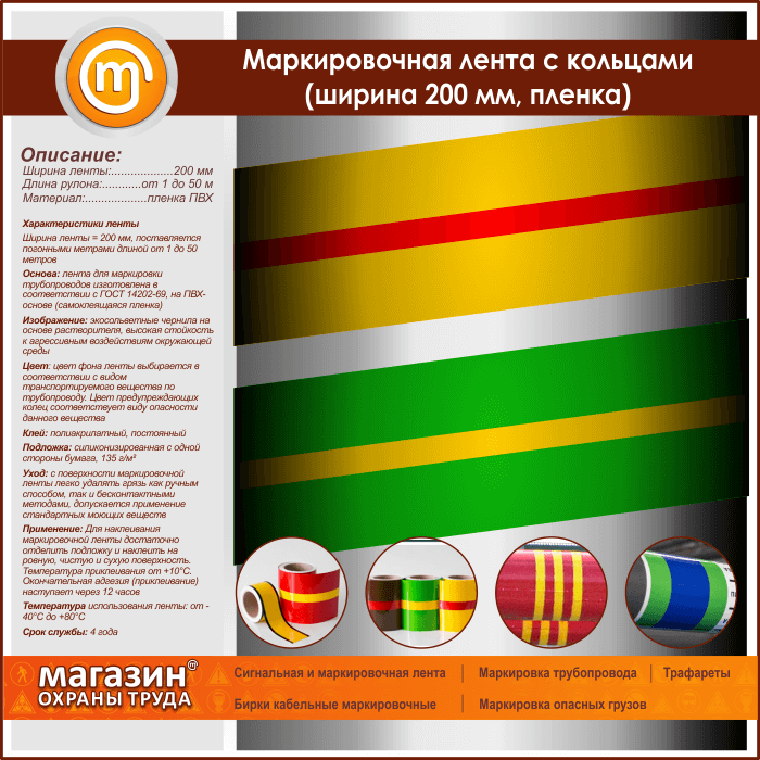 Маркировочная лента с кольцами (ширина 200 мм, самоклеящаяся плёнка) в Магнитогорске купить