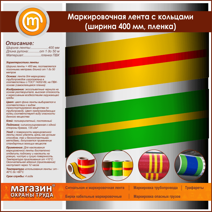 Маркировочная лента с кольцами (ширина 400 мм, самоклеящаяся плёнка) в Магнитогорске купить