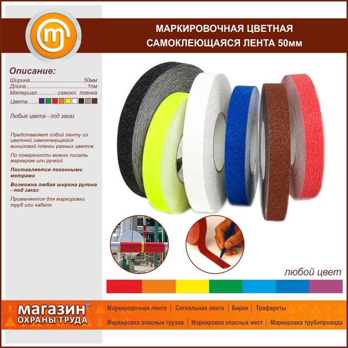 Маркировочная цветная самоклеящаяся лента, 50 мм в Магнитогорске купить