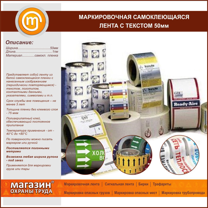 Маркировочная самоклеящаяся лента с текстом 50 мм в Магнитогорске купить