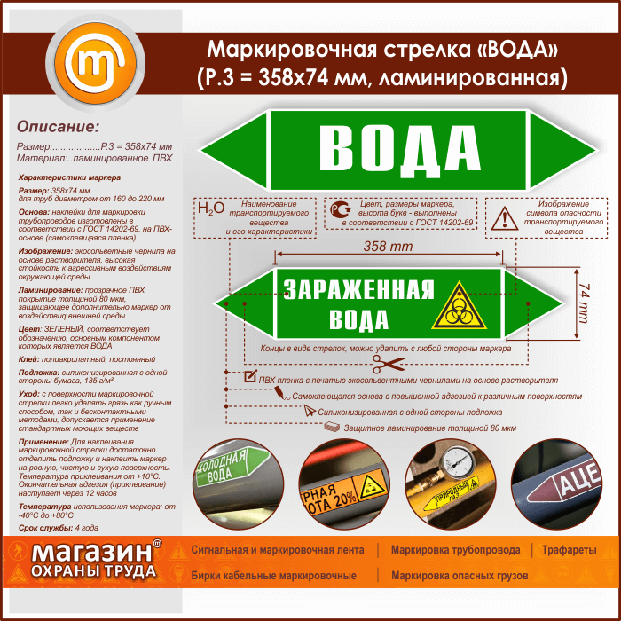 Маркировочная стрелка «ВОДА» (P.3 = 358х74 мм, самоклеящаяся плёнка с ламинированием) в Магнитогорске купить