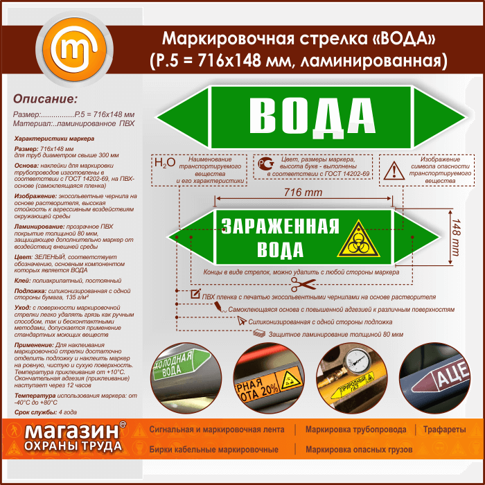 Маркировочная стрелка «ВОДА» (P.5 = 716х148 мм, самоклеящаяся плёнка с ламинированием) в Магнитогорске купить