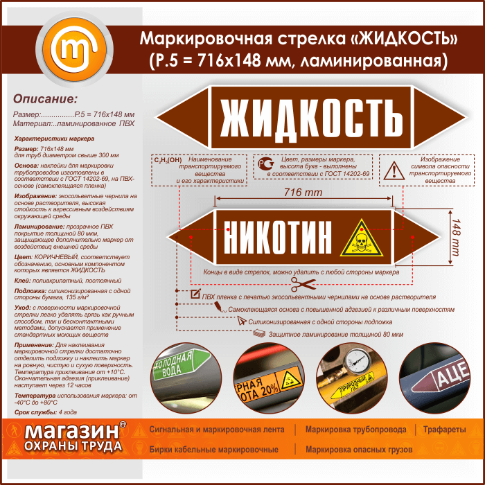 Маркировочная стрелка «ЖИДКОСТЬ» (P.5 = 716х148 мм, самоклеящаяся плёнка с ламинированием) в Магнитогорске купить