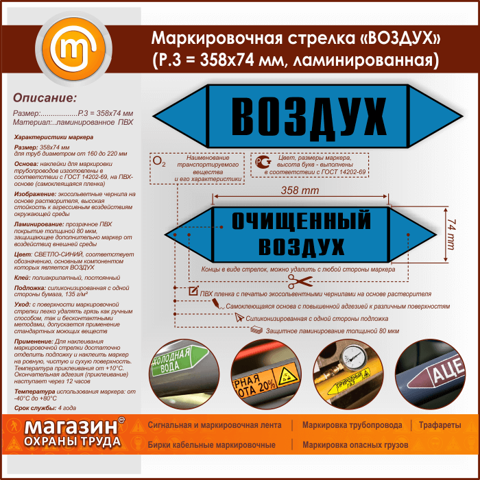 Маркировочная стрелка «ВОЗДУХ» (P.3 = 358х74 мм, самоклеящаяся плёнка с ламинированием) в Магнитогорске купить
