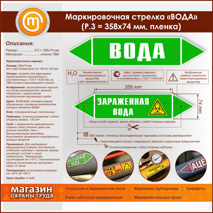 Маркировочная стрелка «ВОДА» (P.3 = 358х74 мм, самоклеящаяся плёнка) в Магнитогорске купить