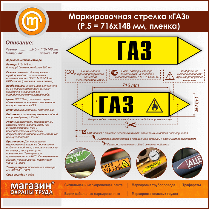 Маркировочная стрелка «ГАЗ» (P.5 = 716х148 мм, самоклеящаяся плёнка) в Магнитогорске купить