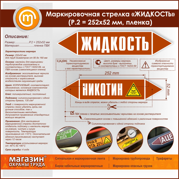 Маркировочная стрелка «ЖИДКОСТЬ» (P.2 = 252х52 мм, самоклеящаяся плёнка) в Магнитогорске купить