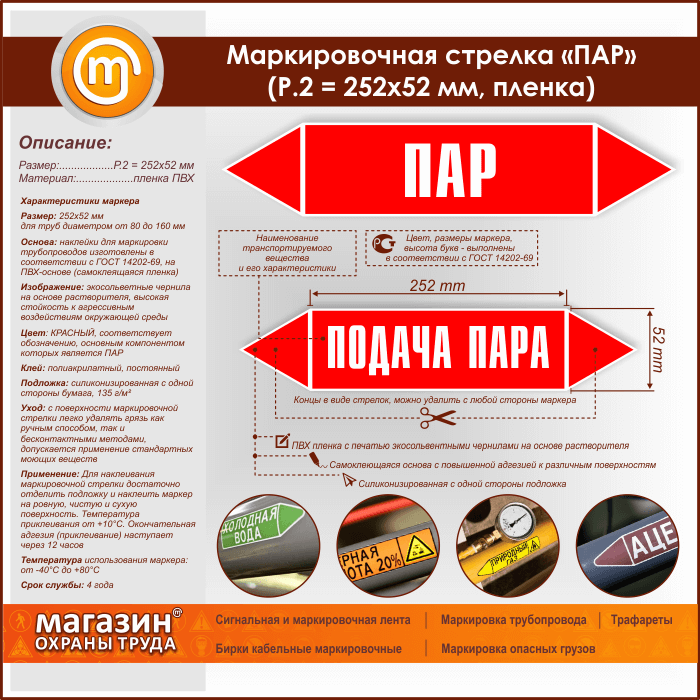Маркировочная стрелка «ПАР» (P.2 = 252х52 мм, самоклеящаяся плёнка) в Магнитогорске купить