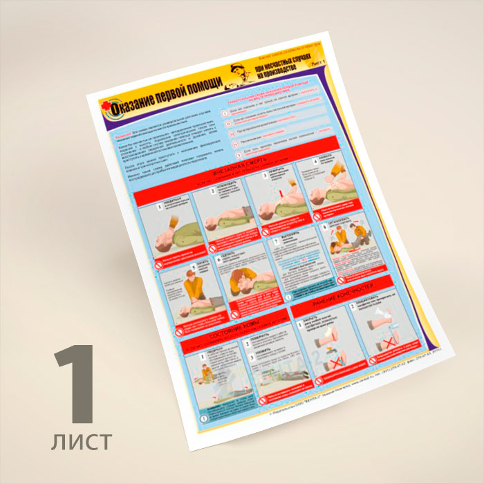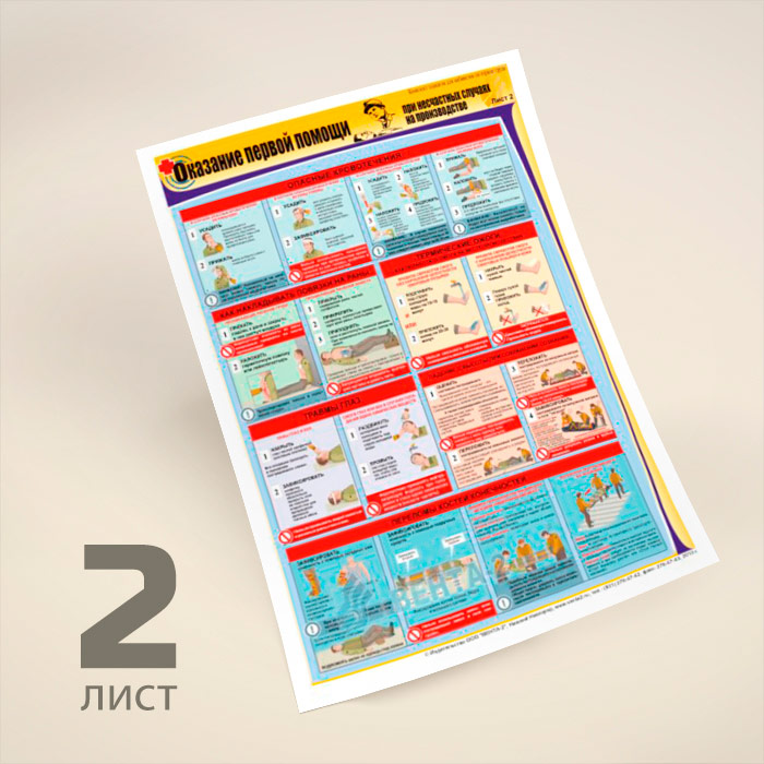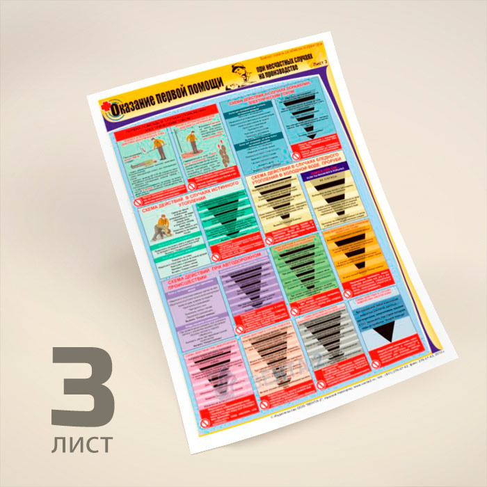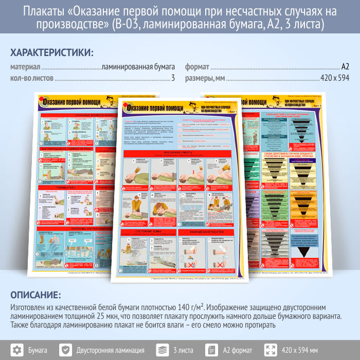 Плакаты «Оказание первой помощи при несчастных случаях на производстве» (В-03, ламинированная бумага, А2, 3 листа) в Магнитогорске купить