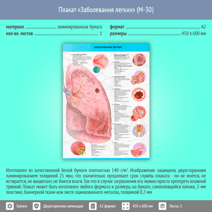 Плакат «Заболевания легких» (М-30, ламинированная бумага, А2, 1 лист) в Магнитогорске купить