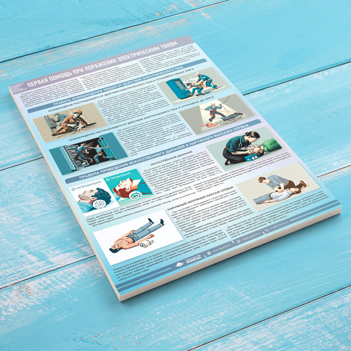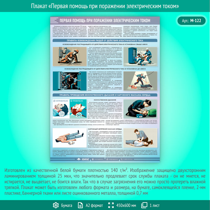 Плакат «Первая помощь при поражении электрическим током» (М-122, ламинированная бумага, А2, 1 лист) в Магнитогорске купить