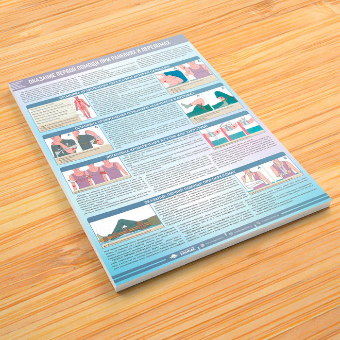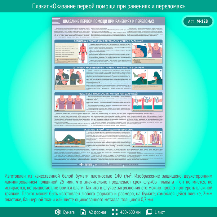 Плакат «Оказание первой помощи при ранениях и переломах» (М-128, ламинированная бумага, А2, 1 лист) в Магнитогорске купить