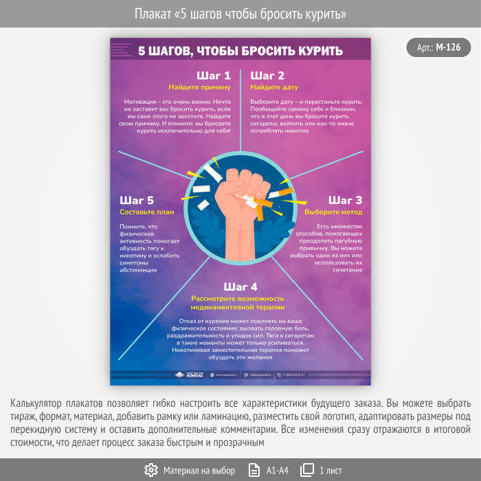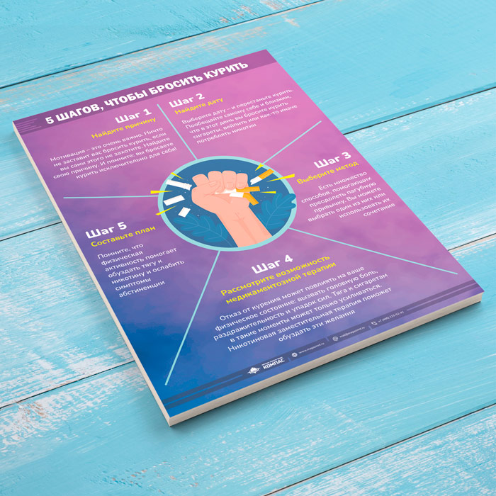 Плакат «5 шагов чтобы бросить курить» (М-126, 1 лист) в Магнитогорске купить