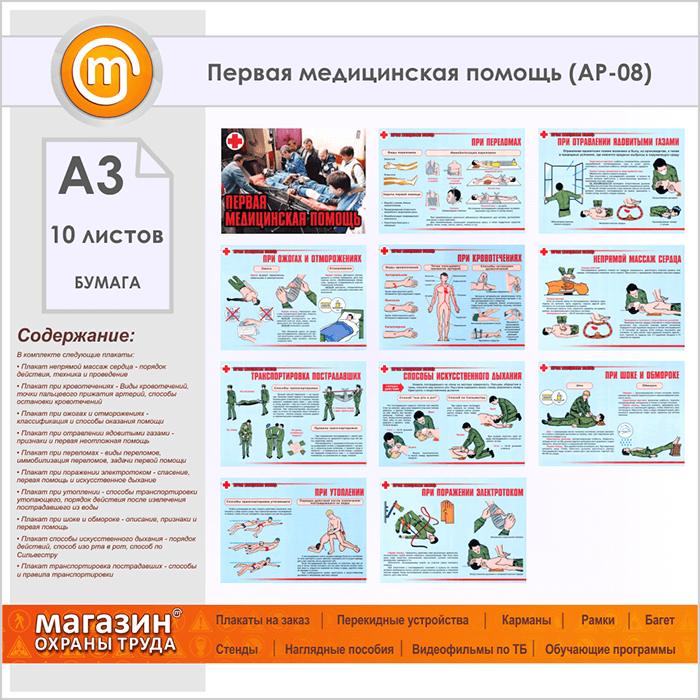 Плакаты «Первая медицинская помощь» (АР-08, бумага, А3, 10 листов) в Магнитогорске купить