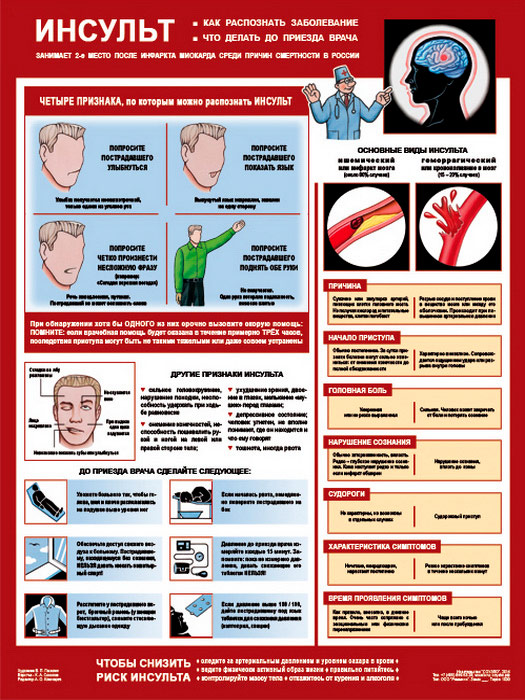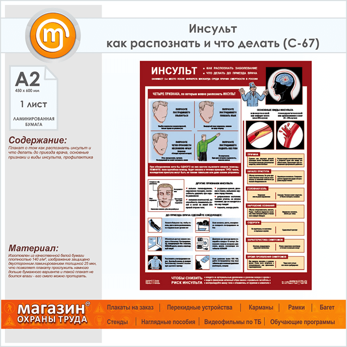 Плакат «Инсульт - как распознать и что делать» (С-67, ламинированная бумага, А2, 1 лист) в Магнитогорске купить