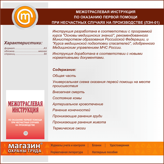 Межотраслевая инструкция по оказанию первой помощи при несчастных случаях на производстве (ЛЭН-01) в Магнитогорске купить
