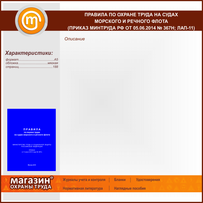 Правила по охране труда на судах морского и речного флота (Приказ Минтруда РФ от 05.06.2014 № 367н) (ЛАП-11) в Магнитогорске купить