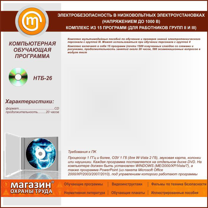 «Электробезопасность в низковольтных электроустановках (напряжением до 1000 В)», комплекс из 15 обучающих программ (для работников групп II и III) в Магнитогорске купить