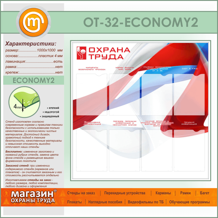 Стенд «Охрана труда» с 8 карманами (OT-32-ECONOMY2) в Магнитогорске купить