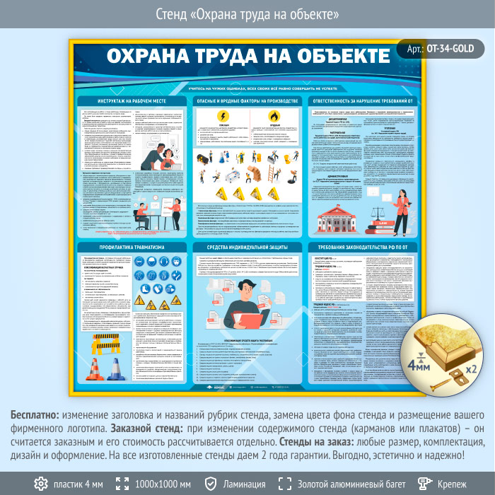Стенд «Охрана труда на объекте» (OT-34-GOLD) в Магнитогорске купить