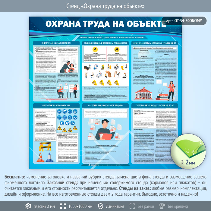 Стенд «Охрана труда на объекте» (OT-34-ECONOMY) в Магнитогорске купить