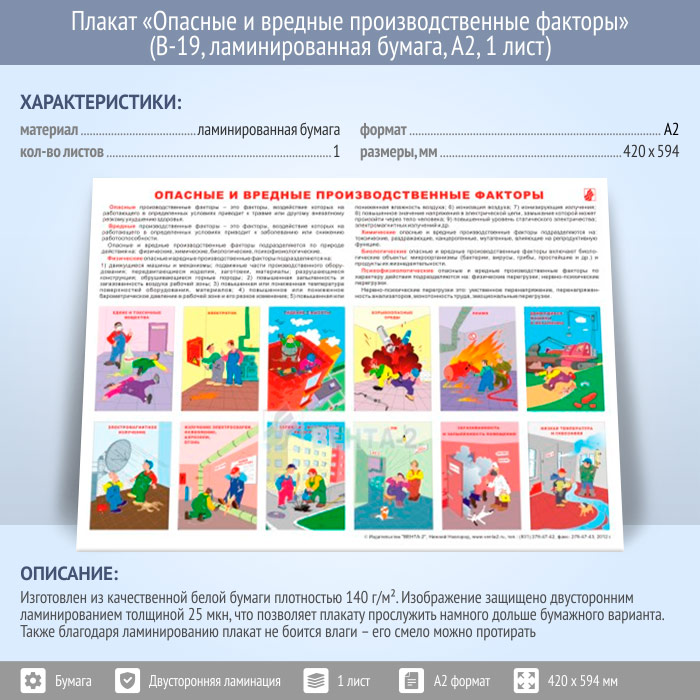 Плакат «Опасные и вредные производственные факторы» (В-19, ламинированная бумага, А2, 1 лист) в Магнитогорске купить