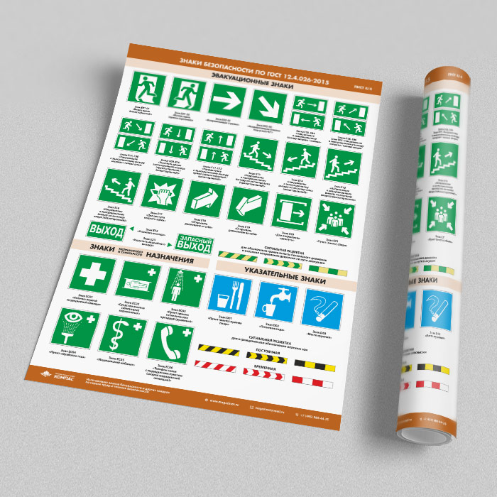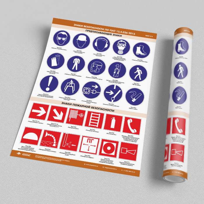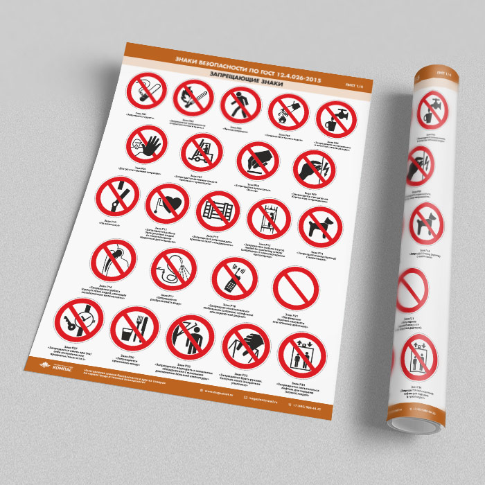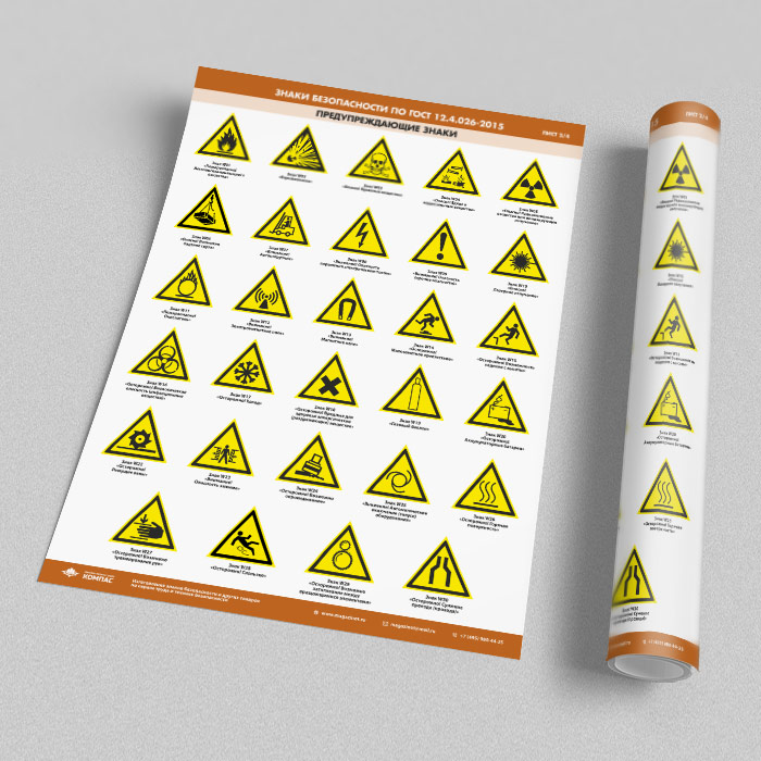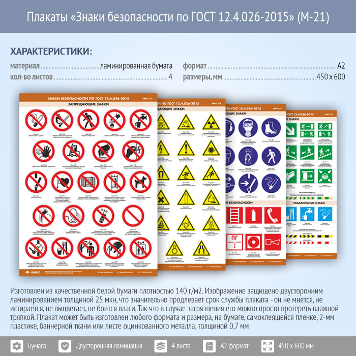 Плакаты «Знаки безопасности по ГОСТ 12.4.026-2015» (М-21, ламинированная бумага, А2, 4 листа) в Магнитогорске купить