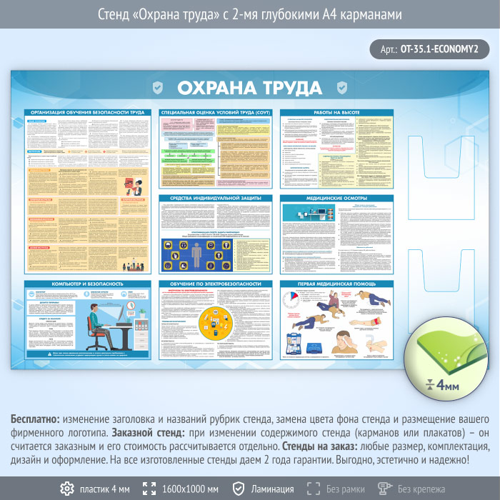 Стенд «Охрана труда» с 2-мя глубокими А4 карманами (OT-35.1-ECONOMY2) в Магнитогорске купить