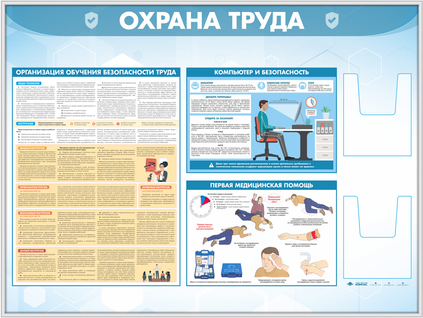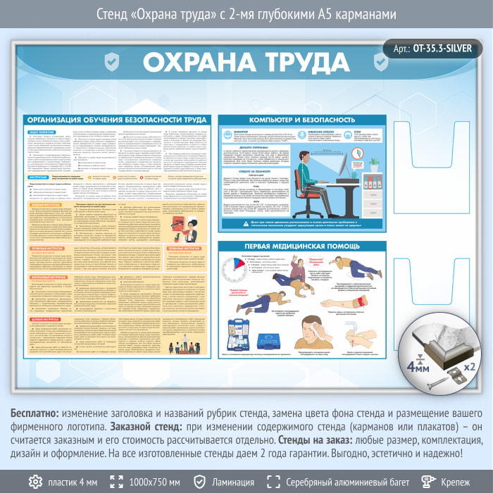Стенд «Охрана труда» с 2-мя глубокими А5 карманами (OT-35.3-SILVER) в Магнитогорске купить