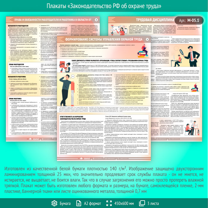 Плакаты «Законодательство РФ об охране труда» (М-05.1, ламинированная бумага, А2, 3 листа) в Магнитогорске купить