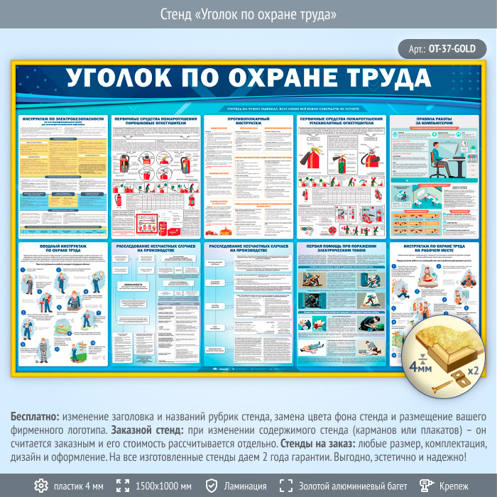 Стенд «Уголок по охране труда» (OT-37-GOLD) в Магнитогорске купить
