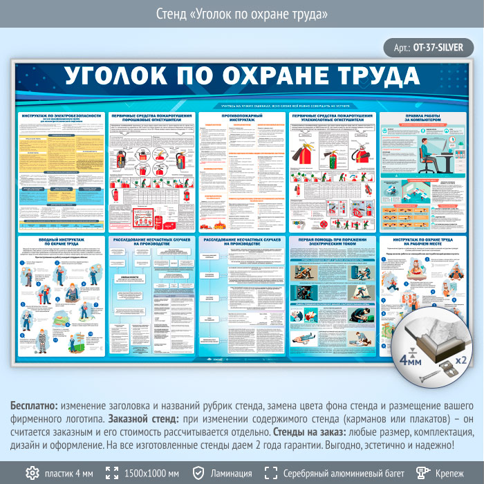 Стенд «Уголок по охране труда» (OT-37-SILVER) в Магнитогорске купить