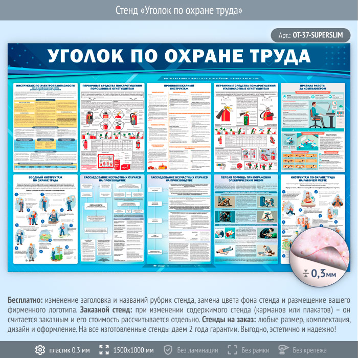 Стенд «Уголок по охране труда» (OT-37-SUPERSLIM) в Магнитогорске купить