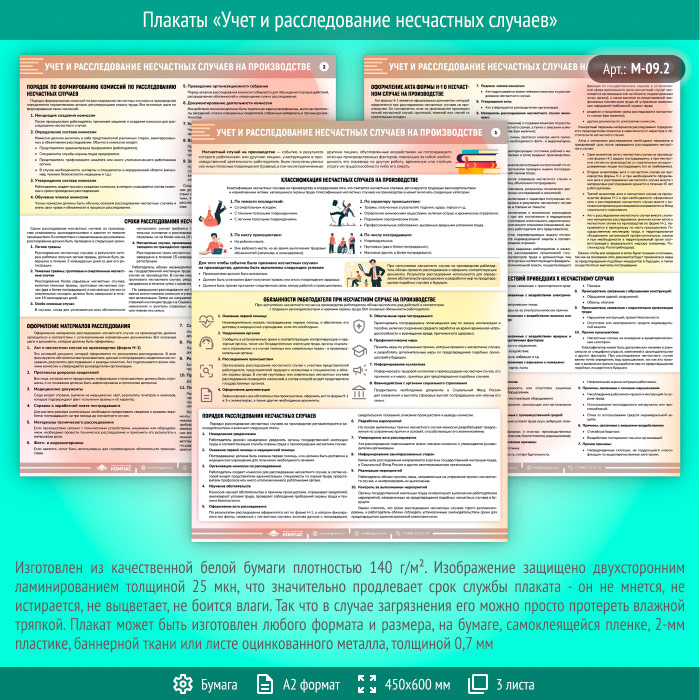 Плакаты «Учет и расследование несчастных случаев» (М-09.2, ламинированная бумага, А2, 3 листа) в Магнитогорске купить