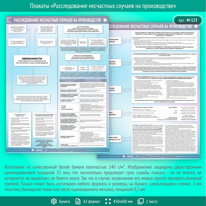 Плакаты «Расследование несчастных случаев на производстве» (М-123, ламинированная бумага, А2, 2 листа) в Магнитогорске купить