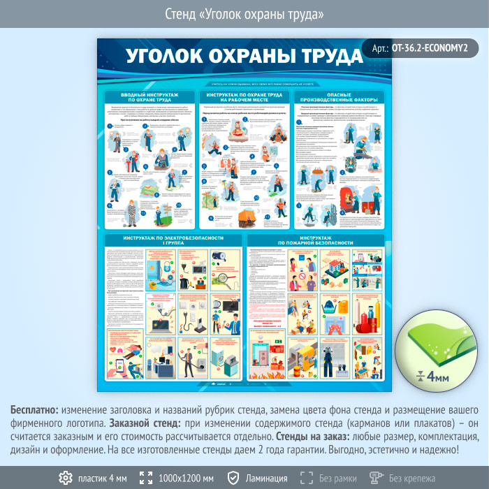 Стенд «Уголок охраны труда» (OT-36.2-ECONOMY2) в Магнитогорске купить