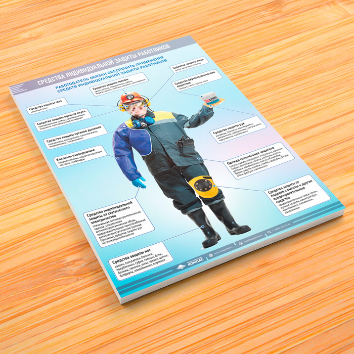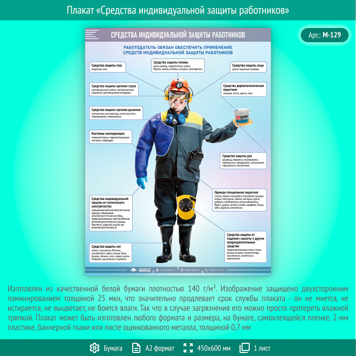 Плакат «Средства индивидуальной защиты работников» (М-129, ламинированная бумага, А2, 1 лист) в Магнитогорске купить