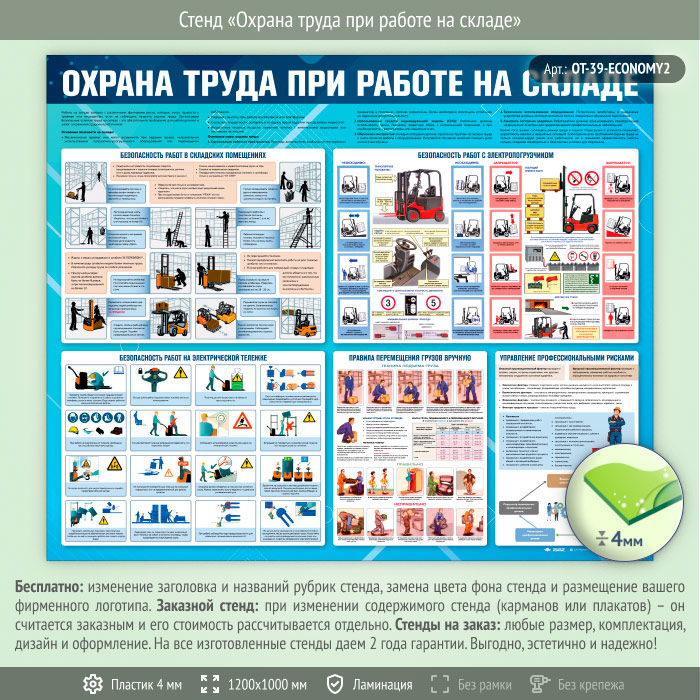 Стенд «Охрана труда при работе на складе» (OT-39-ECONOMY2) в Магнитогорске купить