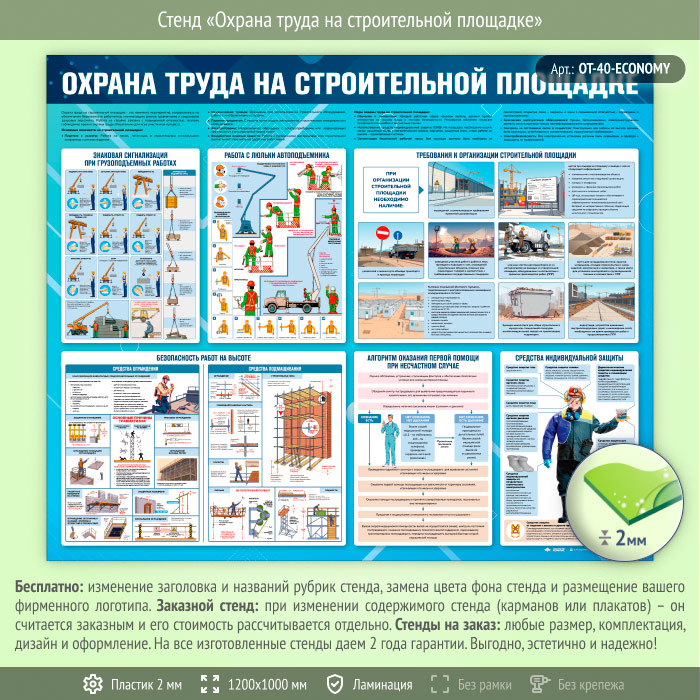 Стенд «Охрана труда на строительной площадке» (OT-40-ECONOMY) в Магнитогорске купить