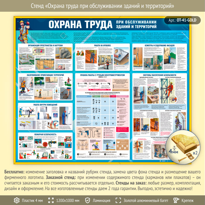 Стенд «Охрана труда при обслуживании зданий и территорий» (OT-41-GOLD) в Магнитогорске купить