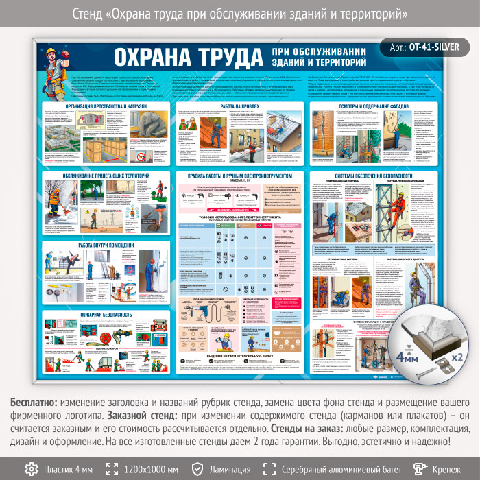 Стенд «Охрана труда при обслуживании зданий и территорий» (OT-41-SILVER) в Магнитогорске купить