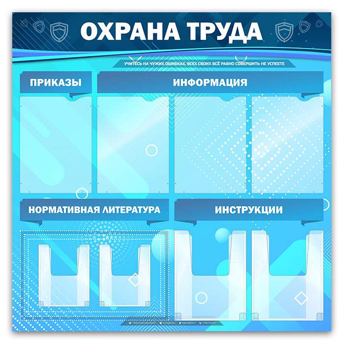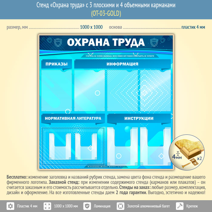 Стенд «Охрана труда» с 4 плоскими и 4 объемными карманами (OT-03-GOLD) в Магнитогорске купить