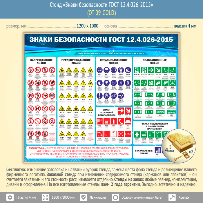 Стенд «Знаки безопасности ГОСТ 12.4.026-2015» (OT-09-GOLD) в Магнитогорске купить