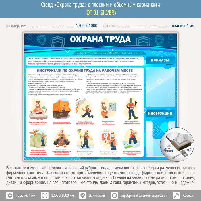 Стенд «Охрана труда» с плоским и объемным карманами (OT-01-SILVER) в Магнитогорске купить