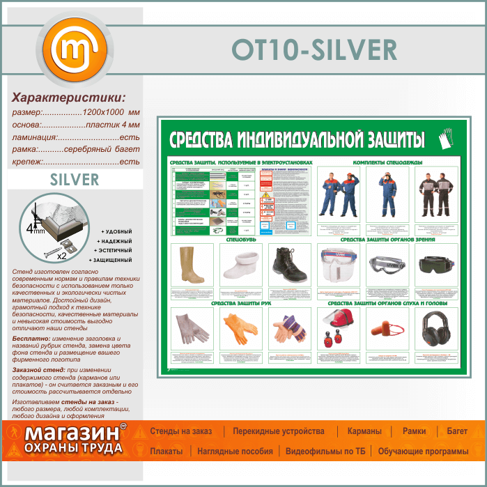 Стенд «Средства индивидуальной защиты» (OT-10-SILVER) в Магнитогорске купить