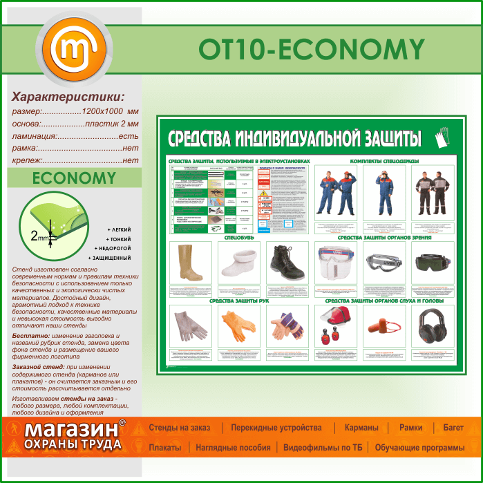 Стенд «Средства индивидуальной защиты» (OT-10-ECONOMY) в Магнитогорске купить