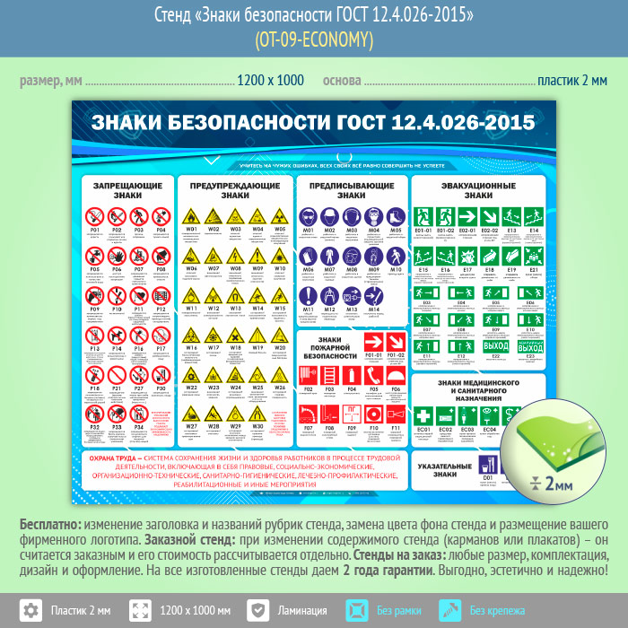 Стенд «Знаки безопасности ГОСТ 12.4.026-2015» (OT-09-ECONOMY) в Магнитогорске купить