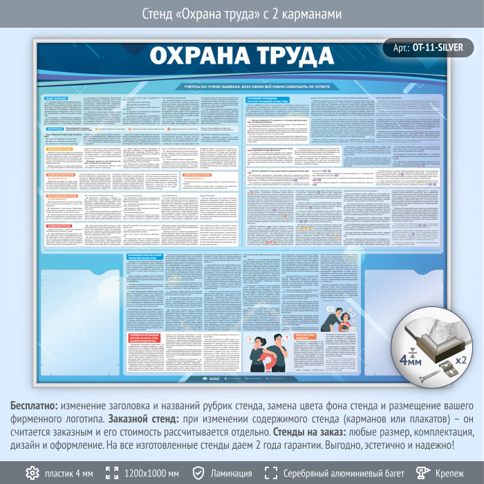 Стенд «Охрана труда» с 2 карманами (OT-11-SILVER) в Магнитогорске купить