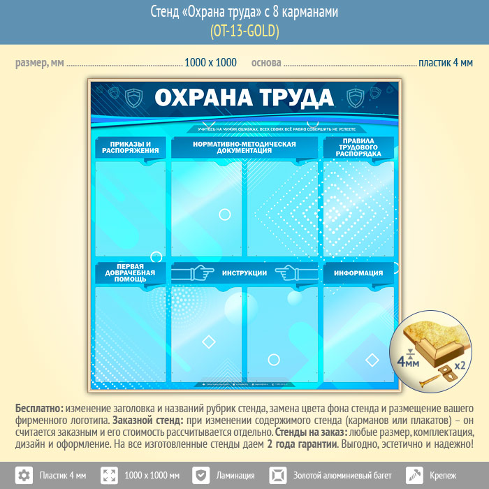 Стенд «Охрана труда» с 8 карманами (OT-13-GOLD) в Магнитогорске купить