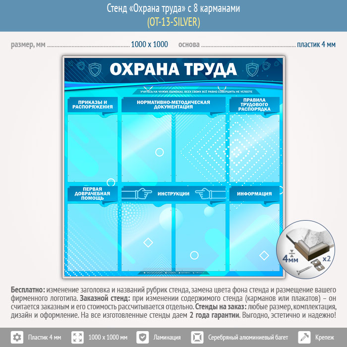 Стенд «Охрана труда» с 8 карманами (OT-13-SILVER) в Магнитогорске купить